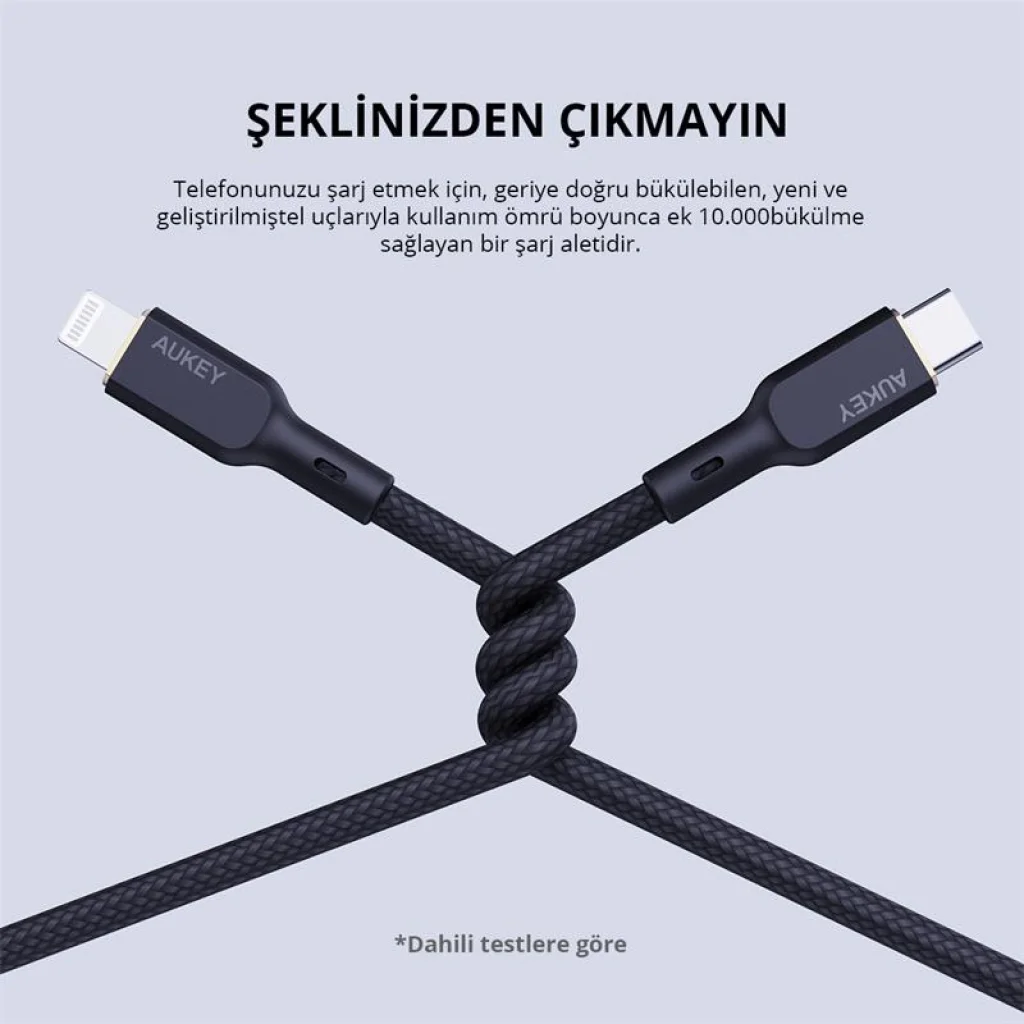 AUKEY CB-NCL1-BK NAYLON ÖRGÜLÜ 3A 480MBPS TYPE-C LIGHTNING KABLOSU 1.8MT