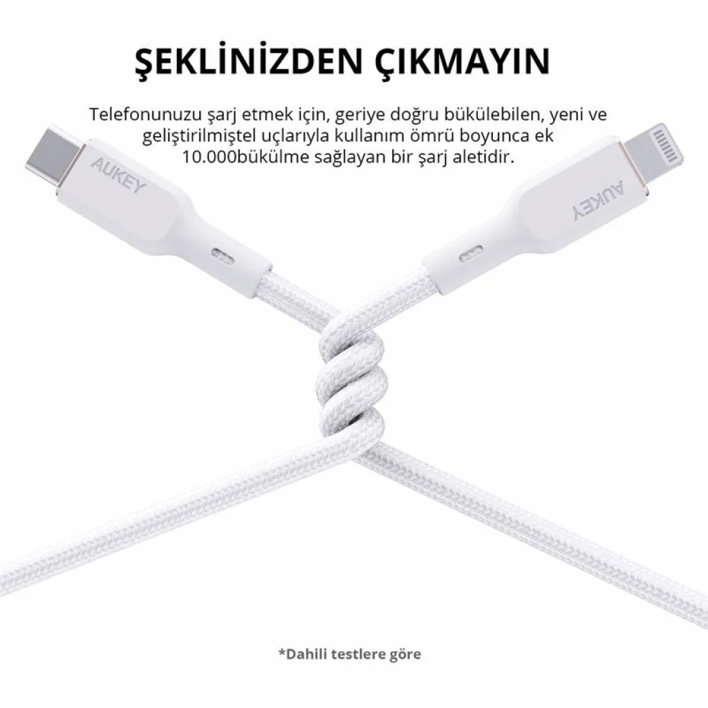 AUKEY CB-NCL1-WH NAYLON ÖRGÜLÜ 3A 480MBPS TYPE-C LIGHTNING KABLOSU 1.8MT