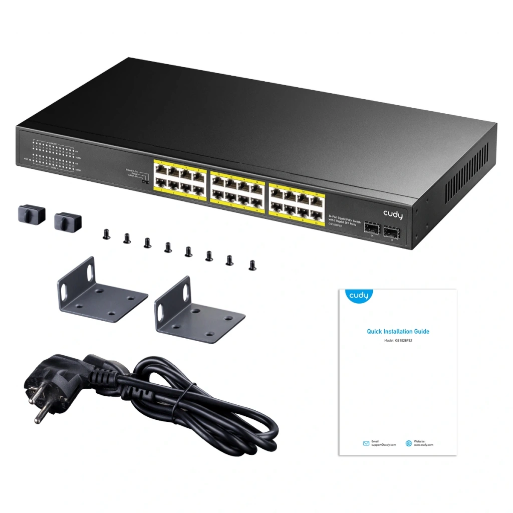 CUDY GS1020PS2 16 Port Gbit 16 Port PoE+ 200W 2xSFP Uplink Rackmount Yönetilemez Switch