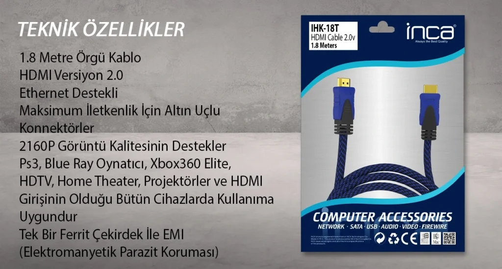 INCA IHK-05T 5 Mt 2.0V 4K& 2K & FULL HD HDMI Kablo