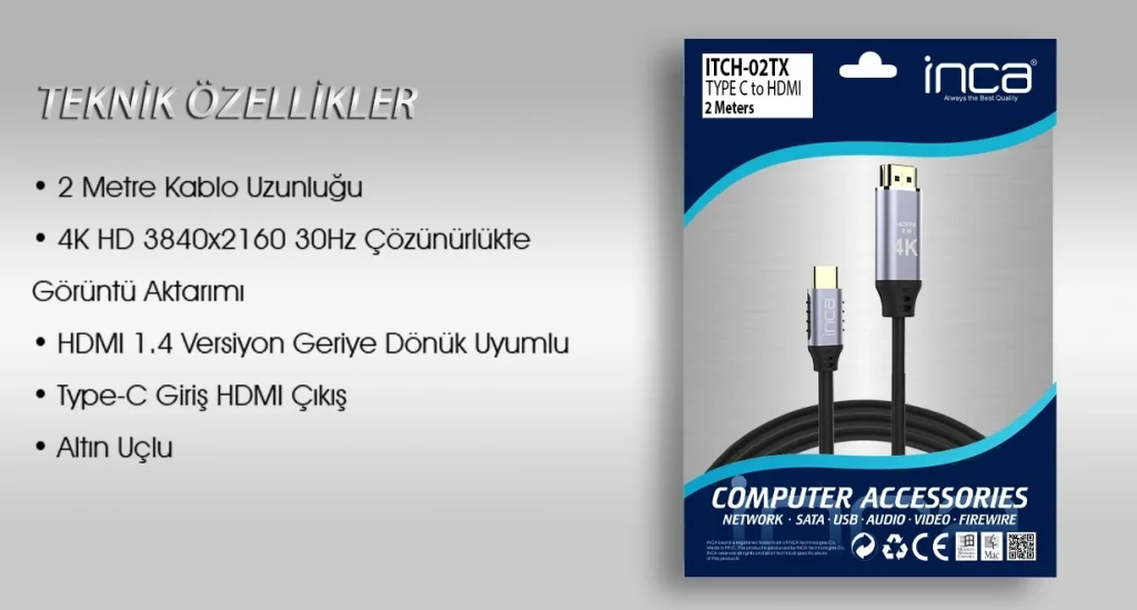 INCA ITCH-02TX 2 Mt TYPE-C TO HDMI Kablo